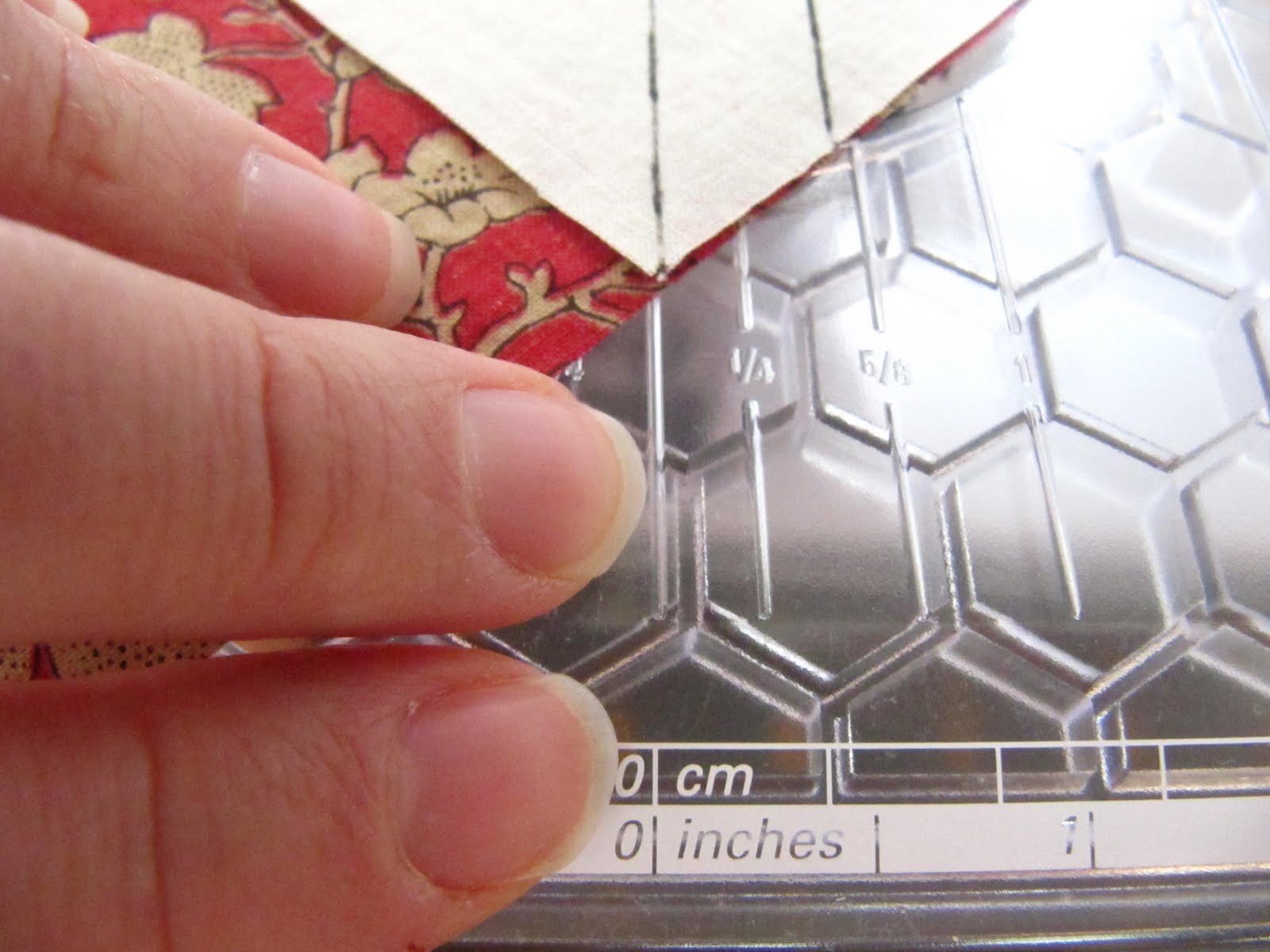 Now press those little extras that we cut off. Press open to the darker fabric. There will be other posts about these little gems later. These will square up to 2".